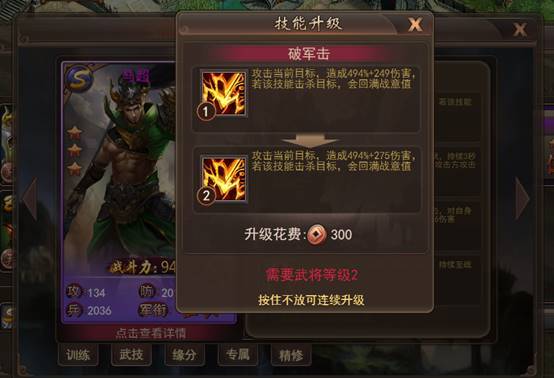 3. 消耗铜钱可对武将技能进行升级,技能升级后伤害效果会变得更强力
