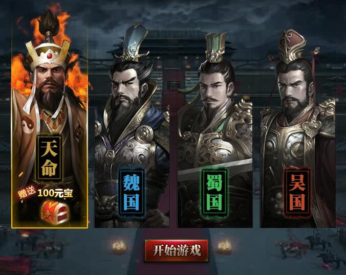 进入游戏后,我们会发现经典的三国阵营选项,除此之外还有一个推荐国家选项,选择推荐国家可获得100元宝。