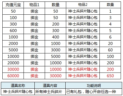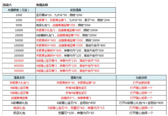 l 活动期间,充值达标即可领取对应奖励。具体对应档次奖励情况: