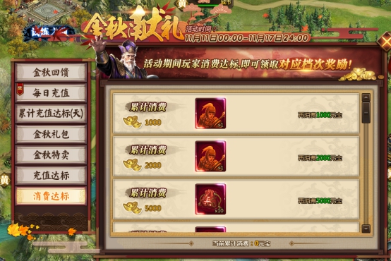 l 活动期间,玩家消费达标即可领取对应档次奖励。具体对应档次奖励情况: