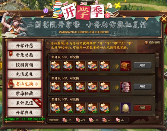l 集齐一定数量的“开”、“学”、“那”、“点”、“事”可兑换相应奖励。奖励兑换条件: