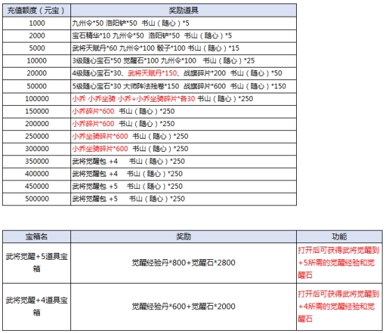 l 活动期间,充值达标即可领取对应奖励。具体对应档次奖励情况: