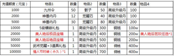 l 充值金额达标可获得相应道具购买折扣,充值越多,折扣越低。