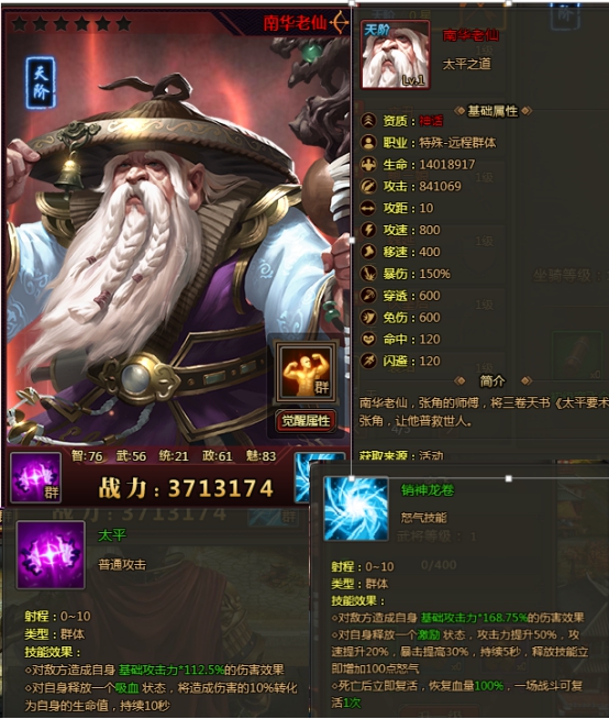 l 新增特殊远程武将—南华老仙,首个满血复活武将,强劲输出,顶级怒气恢复buff;