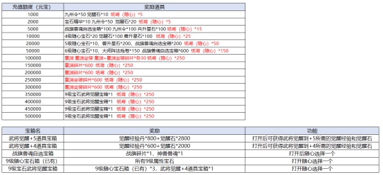 l 活动期间,充值达标即可领取对应奖励。具体对应档次奖励情况: