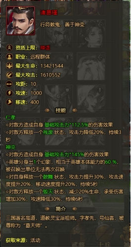 神将诸葛瑾属性图: