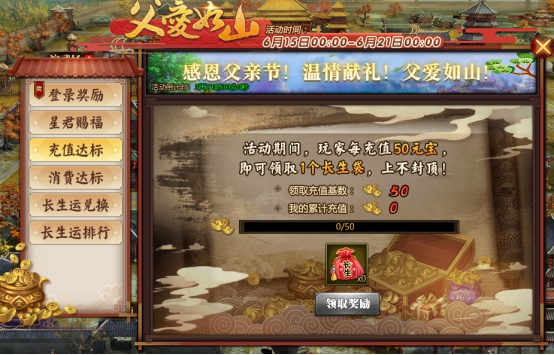 l 当日充值满500元宝,可额外领取一次已选奖励。