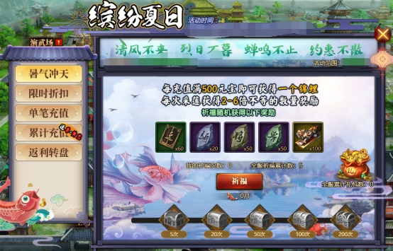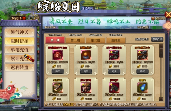l 第一期:当日累计充值达到500元宝,刷新一次折扣。