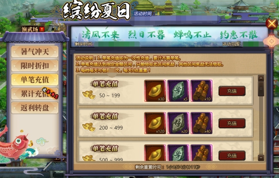 l 第四期:当日累计充值达到2000元宝,刷新一次折扣。