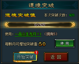道境突破有一定概率失败,在突破途中可以服用众生龙丹,增加突破几率。