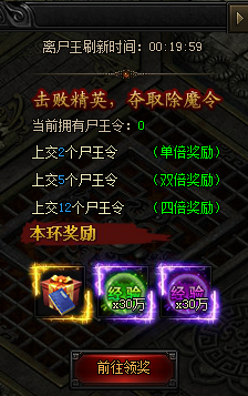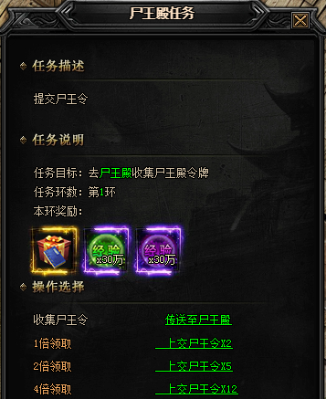 尸王殿每20分钟刷新BOSS暗之尸皇,击杀暗之尸皇掉落尸王令,玩家拾取尸王令后可与张定山对话,领取本职业技能书与经验奖励。