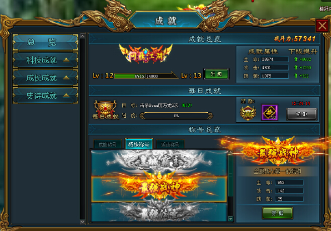 成长成就记录玩家每时每刻的成长,和玩家挑战自我极限的成果战士