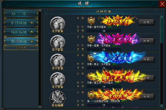 成就分为科技成就、成长成就、史诗成就。