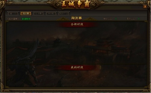 报名结束后,赛区内所有公会随机配对,进行淘汰赛;具体对阵安排可在游戏内“王城争霸”的“淘汰赛”界面查看;