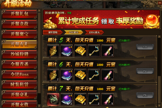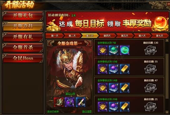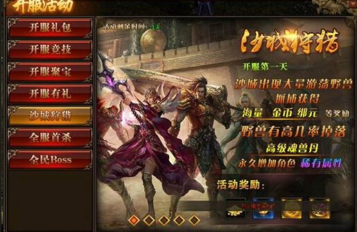 活动详情:开服第1天在沙城抓获游荡的野兽,可以获得海量金币、绑元等奖励,还有高几率获得高级魂兽丹;