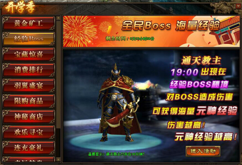 2.活动中,玩家对BOSS造成的伤害,将在活动结束后转换成元神经验并发放;