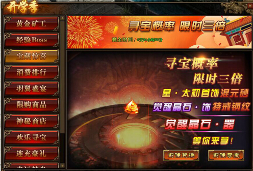 1.活动期间,玩家寻宝概率翻倍,极高几率获得星·太初首饰,特戒钢纹,混元砂,觉醒晶石·饰以及觉醒晶石·器