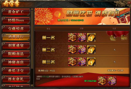 第二名:数一数二自选宝箱,低级灵器自选宝箱*1*1,金条(300w)*3;