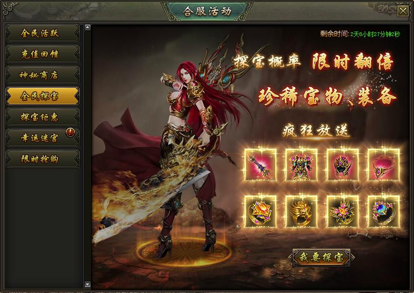 活动说明:活动期间内限时开放超爽活动地图,海量BOSS任您杀,极品道具任您换!