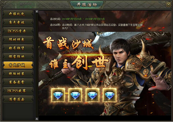活动内容:开服第5天晚上20:00~21:00系统自动开启攻城战,夺得沙城的帮会将会获得20000钻石的奖励!