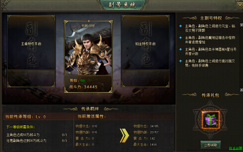 7.主角色可以每周领取一个传承礼包,与传承等级礼包等级无关