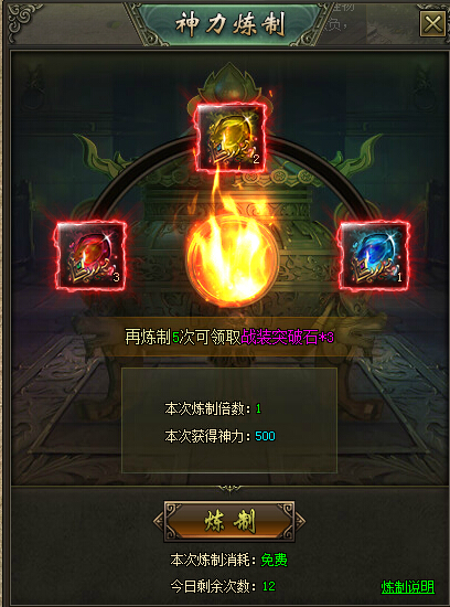 炼制倍数:1 获得神力:500 价格:免费