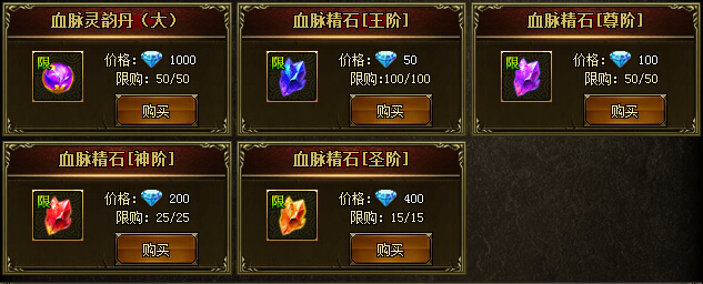 1.血脉分为普通血脉、王阶血脉、尊阶血脉、神阶血脉、圣阶血脉5种等级
