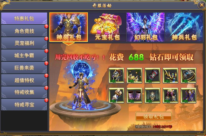 活动说明:活动期间,限时抢购极品礼包!
