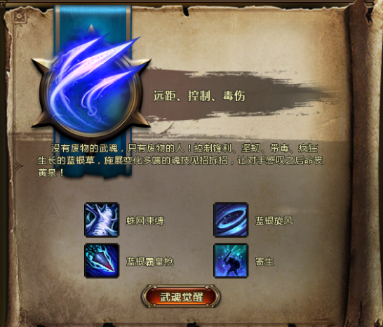 2、 初次武魂选择:玩家在进入游戏完成武魂殿地图主线任务后,即可在三个练级效率较高的武魂中进行主武魂的选择(蓝银草、邪眸白虎、邪火凤凰)。
