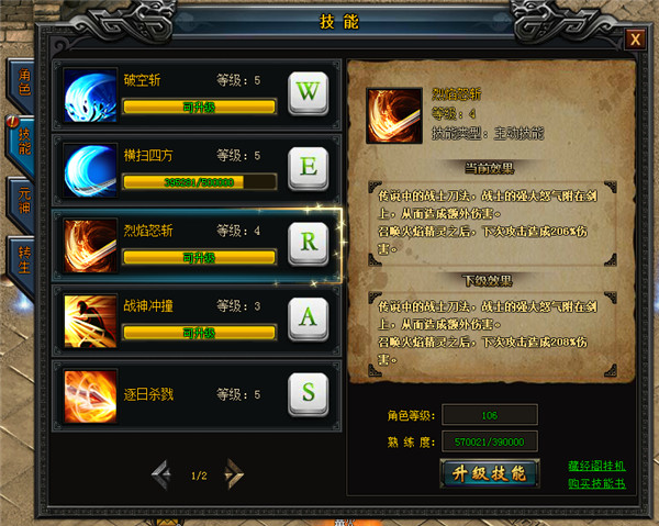 包括破空斩、横扫四方、烈焰怒斩、战神冲撞、逐日杀戮、强攻剑法