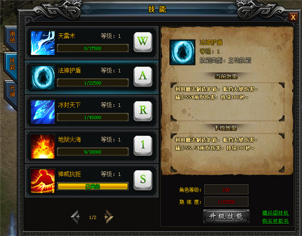 包括天雷术、法神护盾、冰封天下、地狱火海、神威抗拒、暴风雷光、焚天火雨