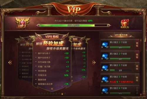 VIP特权包含创建第二、三角色、VIP属性、装备自动熔炼、经验加成、免费传送、更多的副本次数、每周礼包、远程商店等等等等,总之多的我都数不清啦。