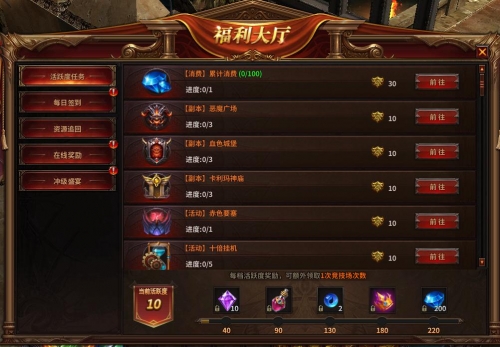 当活跃度到达一定数量时,可以领取活跃度丰厚奖励!