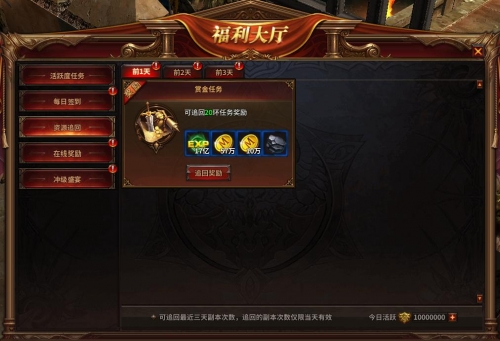 在资源追回活动中,玩家可以消耗活跃度、钻石或者绑钻追回前三天未使用的活动次数或奖励。