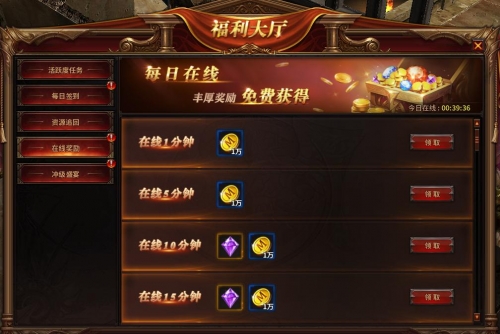 玩家每日在线达到一定时间时,将可以领取丰厚在线奖励!