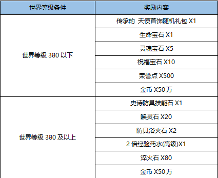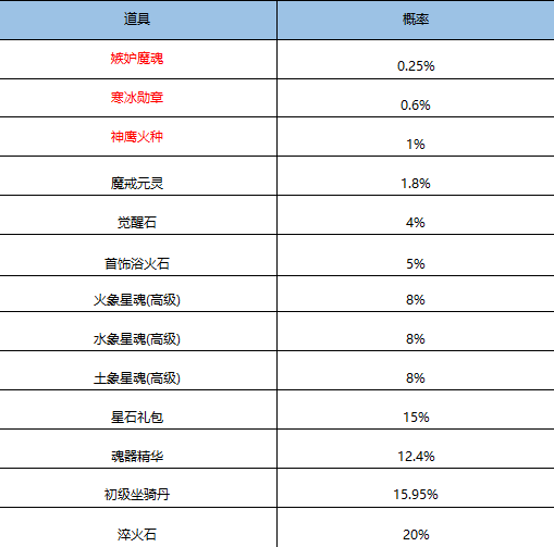 (2)世界等级380及以上的服燃放耀世爆竹概率开出:嫉妒魔魂,寒冰勋章,神鹰火种,魔戒元灵,觉醒石等珍稀道具;