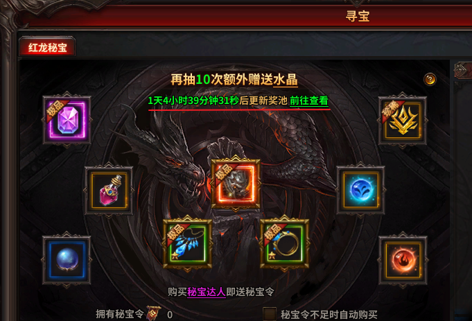 2. 红龙秘宝、符文寻宝的奖池奖励更新信息,将会在界面上进行显示;