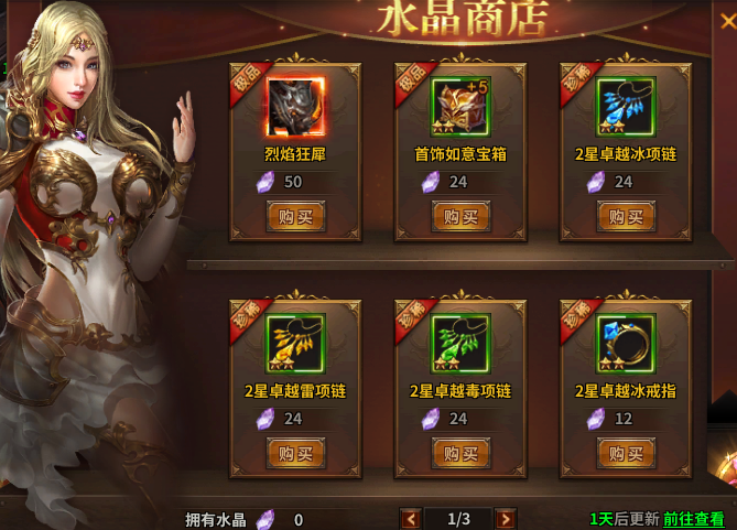 5) 【水晶商店】第一轮商品即为当前的商品;