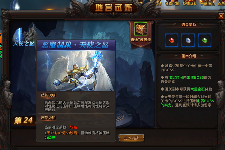 第五天宝石等级,这个其实没啥说的,注意优先合成自己等级最低的宝石,另外每天有一段时间怪物会被大天使压制,注意突破关卡放在那个时候。