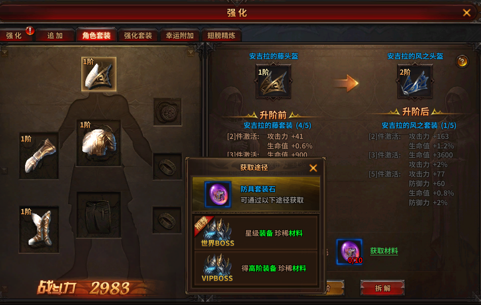 第九天套装阶数排行,其实也是消费和战力的比拼,比别人击杀更高等级的BOSS意味着你的套装等级会更高,同样的,开服期间会有套装石的新服商店活动,觉得不稳的,可以小小消费补充下战力,套装石的活动,购买性价比还行。