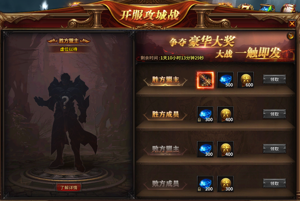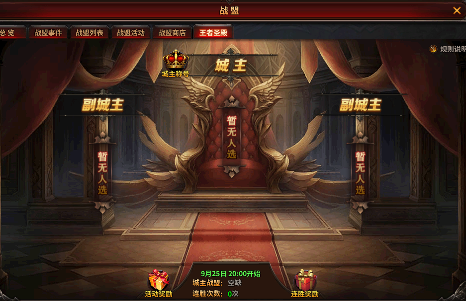 首先是战盟盟主,开服第二天,战盟内战力最高的玩家自动成为盟主,这个是一定要拿的。如果自己重新建立战盟,很难像第一个盟那样收到人。