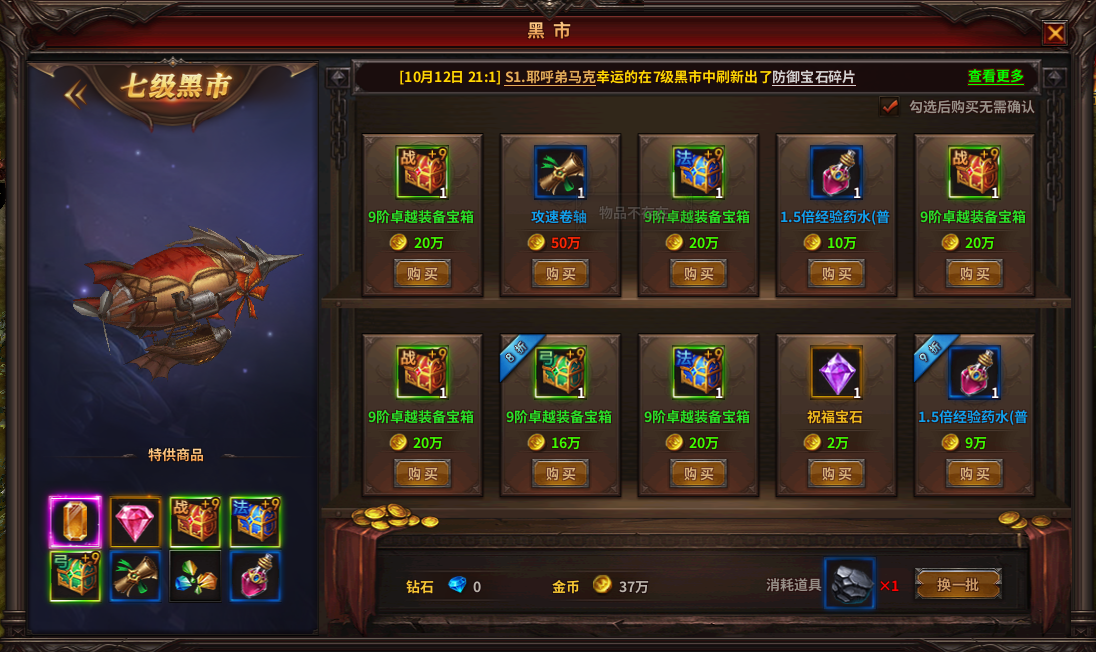 暗黑大天使之黑市系统,珍稀物品,超值优惠