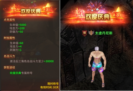 1、七日狂欢 (1)活动期间,累计登录天数达到要求即可领取奖励,累计登录7天有绝版活动称号【欢度庆典】免费赠送!走过路过不要错过啦~