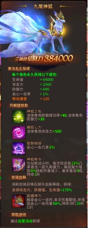 九尾神狐召唤石:可激活坐骑【九尾神狐】,三角色至少提升384000战力!