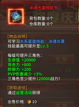 (3)冰魂光罩技能书:激活后立即提升至少120000战力!