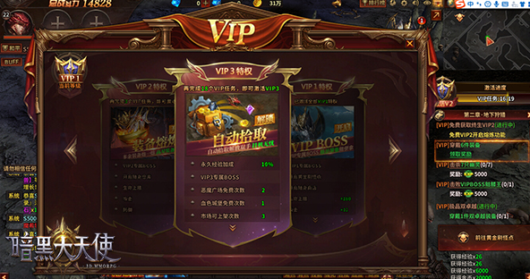 在快节奏、碎片化的娱乐体态中,如何呈现酣畅淋漓的游戏快感,这是特玩《暗黑大天使》的重要探索方向。通过对玩家需求的深入剖析,在恶魔广场、血色城堡、地宫试炼,战盟交互等日常PVE体验中,富有崭新元素的玩法,让游戏整体更加简洁,更有趣味,更符合当下用户的娱乐方式。同时,游戏大胆引入了免费VIP升级模式,无需氪金,只要玩家在游戏中完成VIP对应的激活任务,解锁VIP等级,即可获得对应VIP特权。包含创建第二、三角色、VIP属性、装备自动熔炼、经验加成、免费传送、更多副本次数、每周福利礼包、远程商店等。这些精彩内容,也仅仅只是开始!