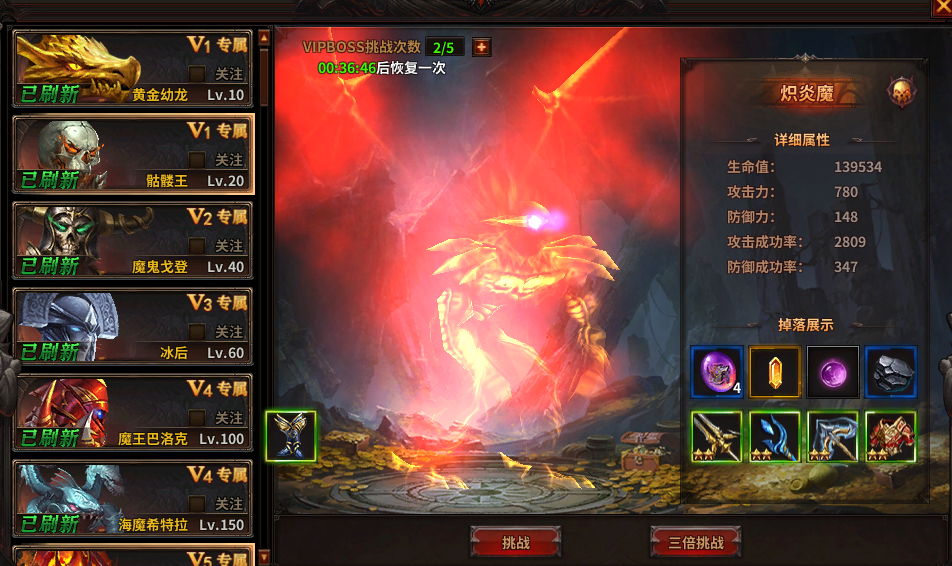 不同的BOSS有着不同的玩法,首先我们来看VIPBOSS: