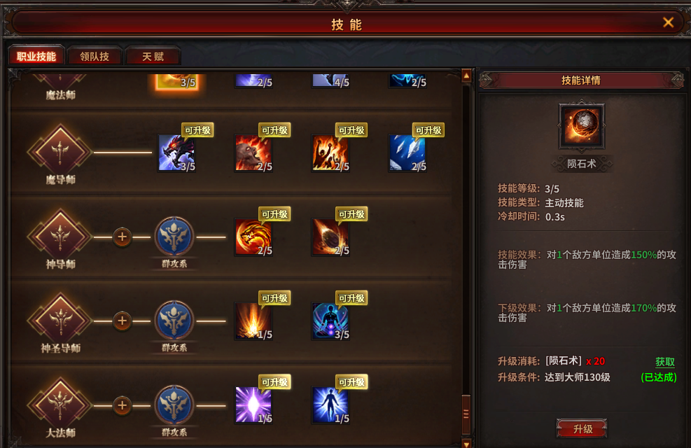 毁灭烈焰——群攻技能6个目标,升级后可降低冷却时间