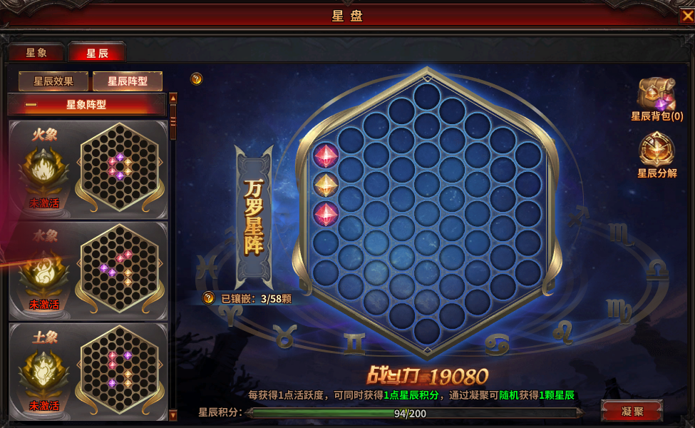 星象阵型(共5个,由6颗星辰组成),激活可获得高额属性;