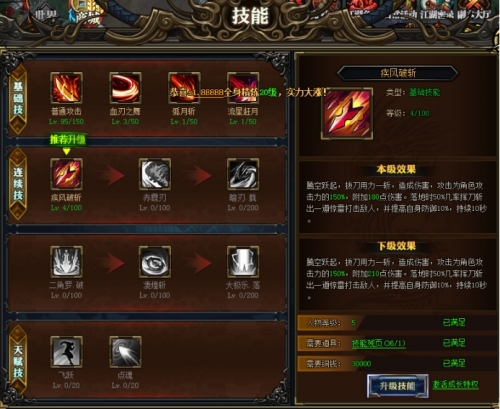 ● 技能部分技能达到50级、100级时需要高级技能书进行突破。技能突破后技能更强,部分技能产生新的技能效果。
